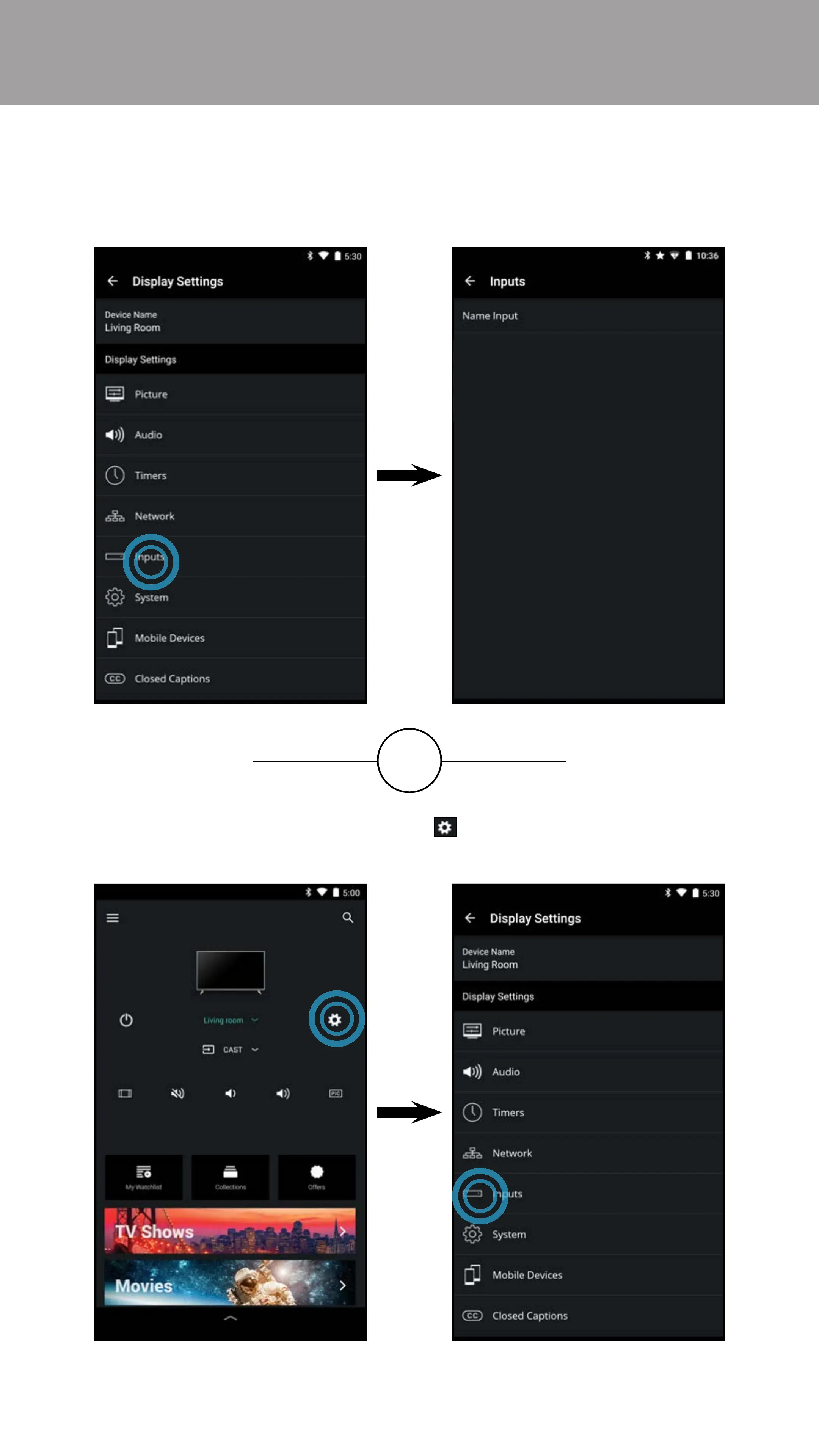 • From the Display Settings menu, tap on Inputs. The Inputs menu