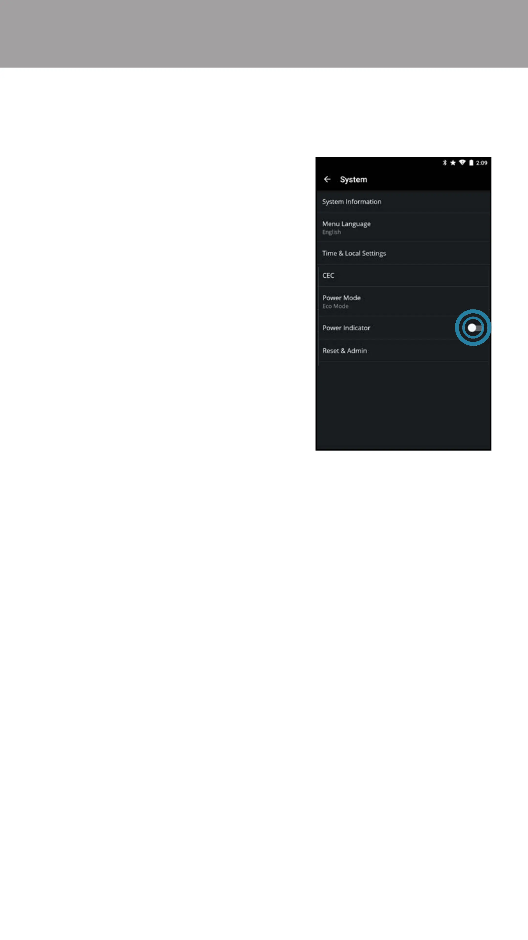 the Display is on. You can change this setting if you prefer the indicator to be on.