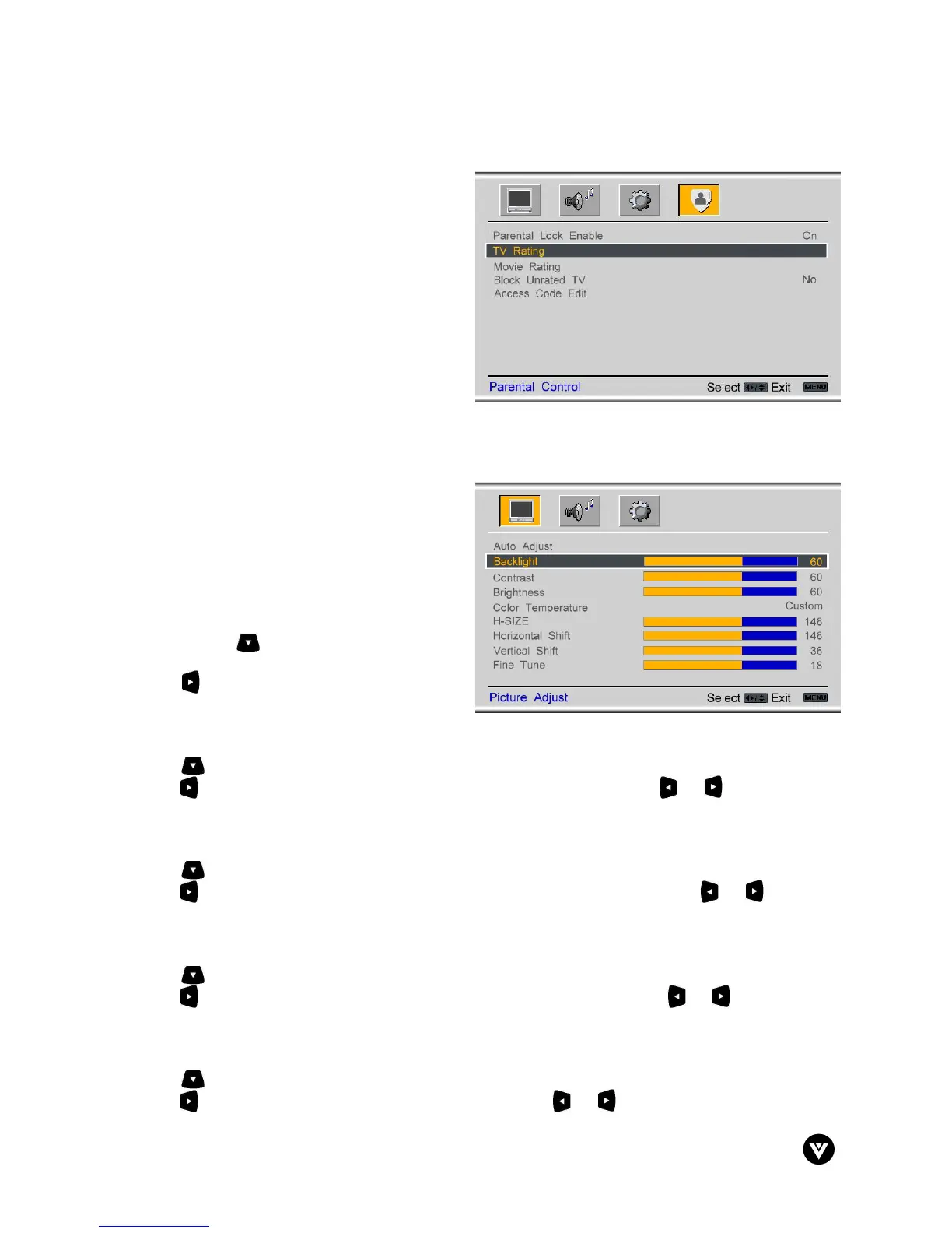 Press the button to start adjusting the vertical position of the picture. Use the or button to adjust