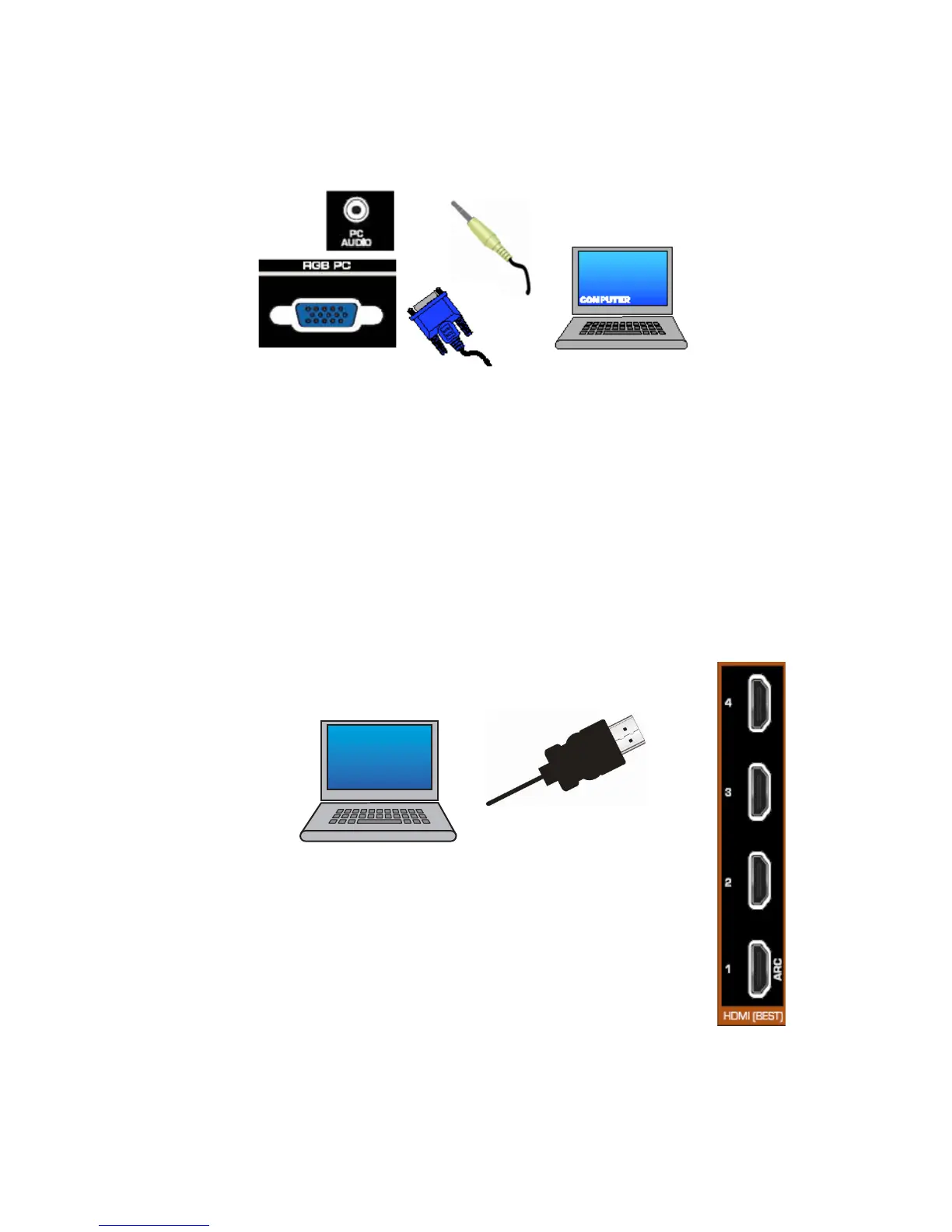 3. Connect the RGB (VGA) cable from your computer to the RGB PC jack on of your HDTV.