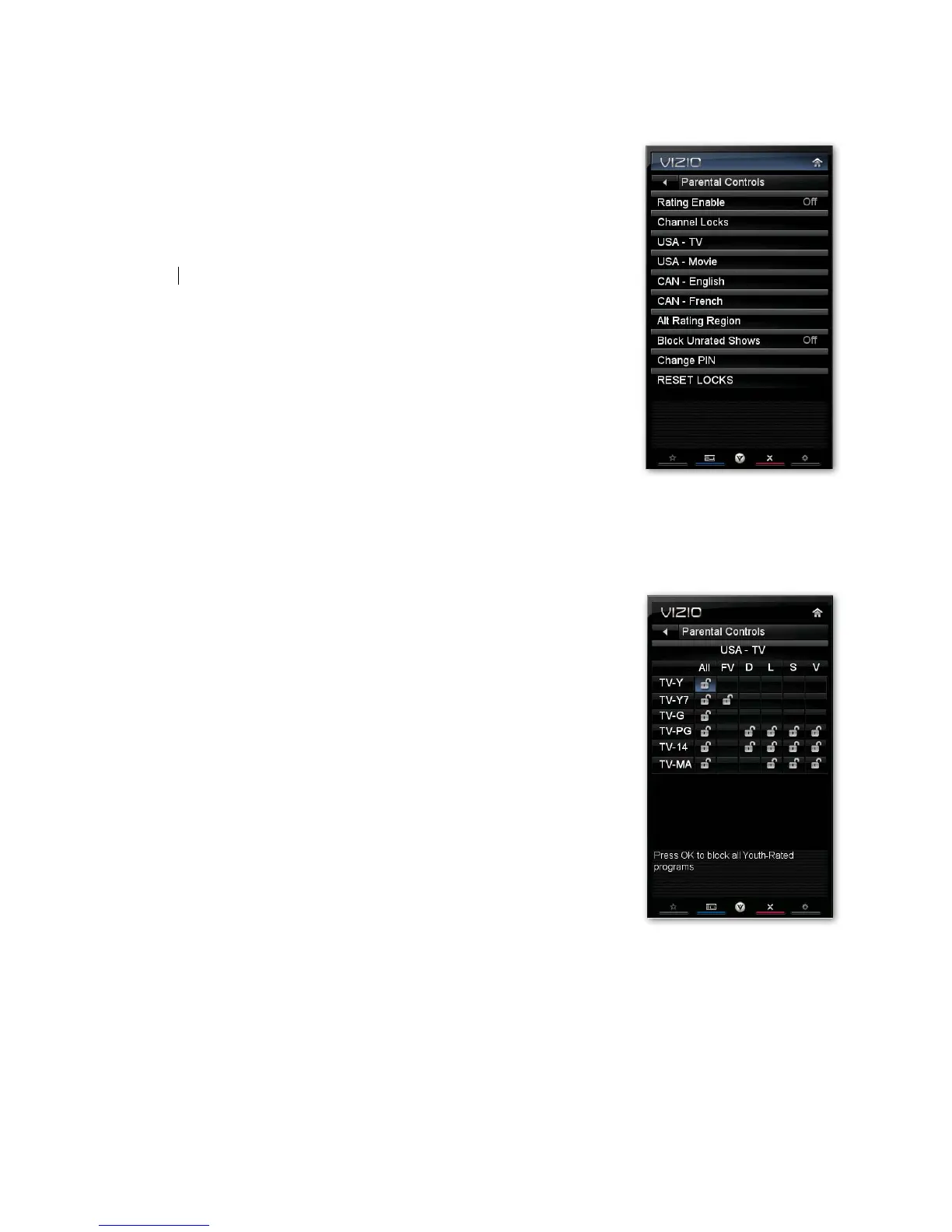 Note: When Rating Enable is OFF, the USA-TV Rating