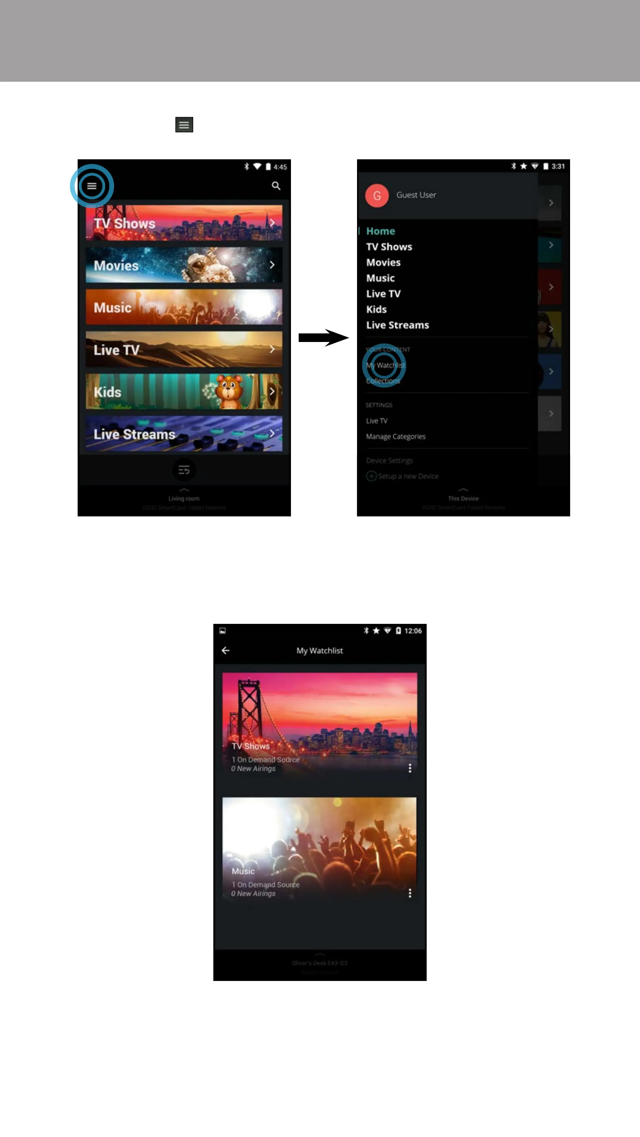 2. The My Watchlist menu is displayed. Tap on a title, select and source, and