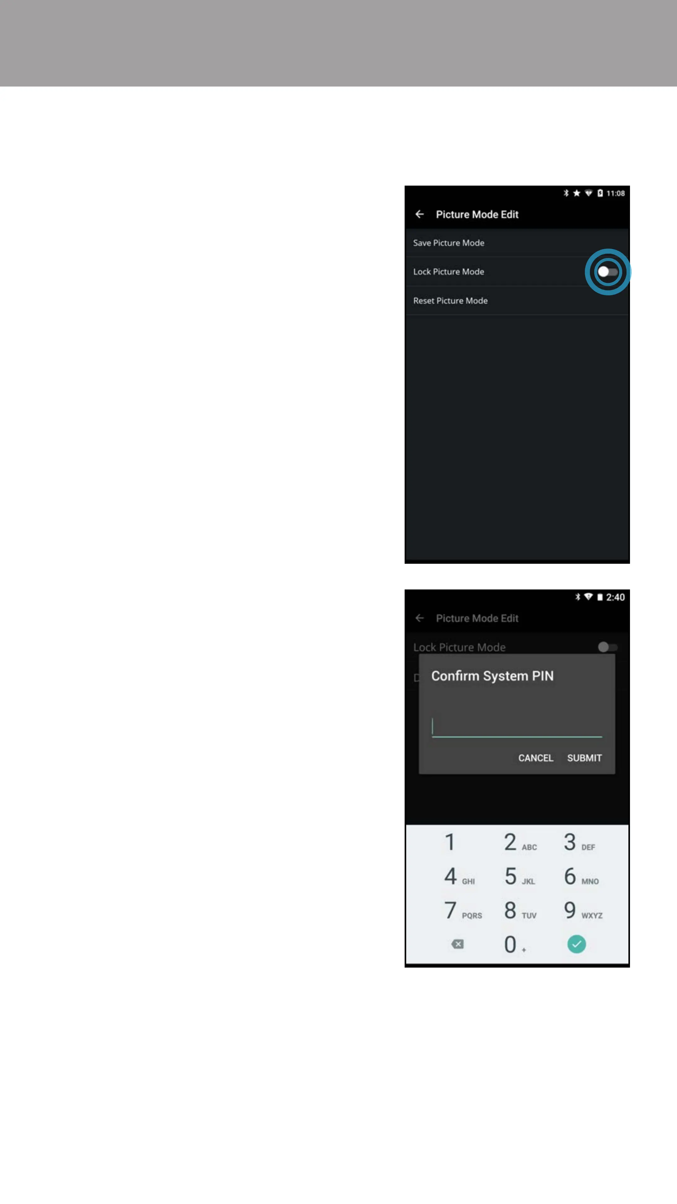 Custom picture modes can be locked/unlocked with a unique PIN to prevent
