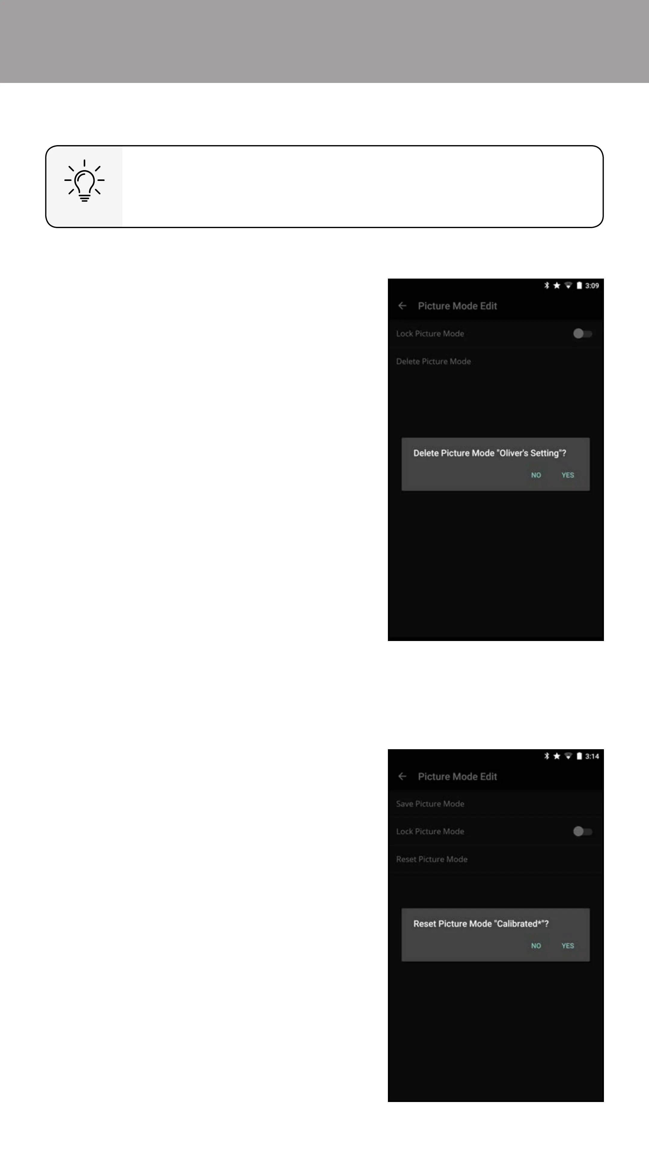 Reset the picture mode settings (for a preset picture mode) to the factory
