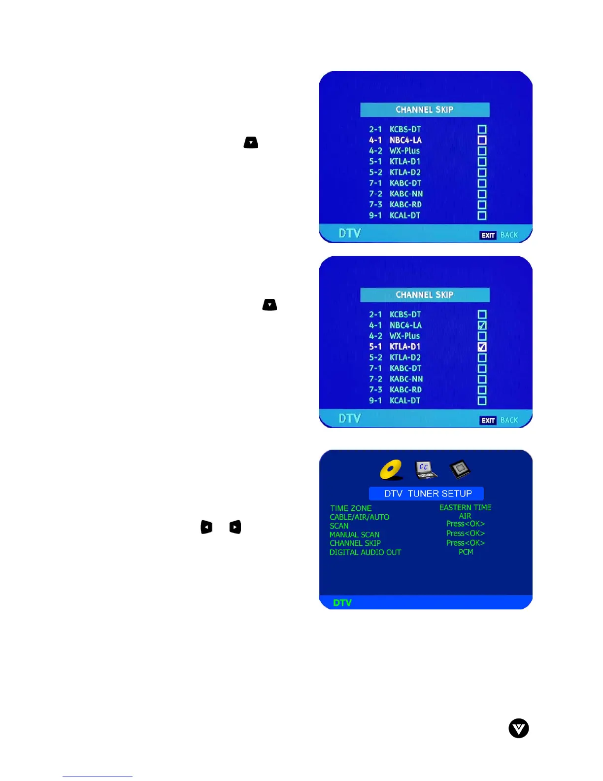 or CH- buttons, this channel will be skipped and not