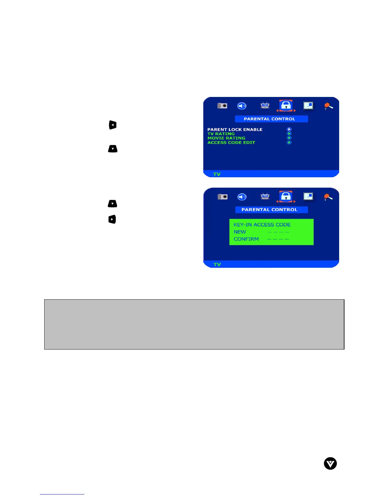 b) The DTV Parental Control password will always be the same as this one.