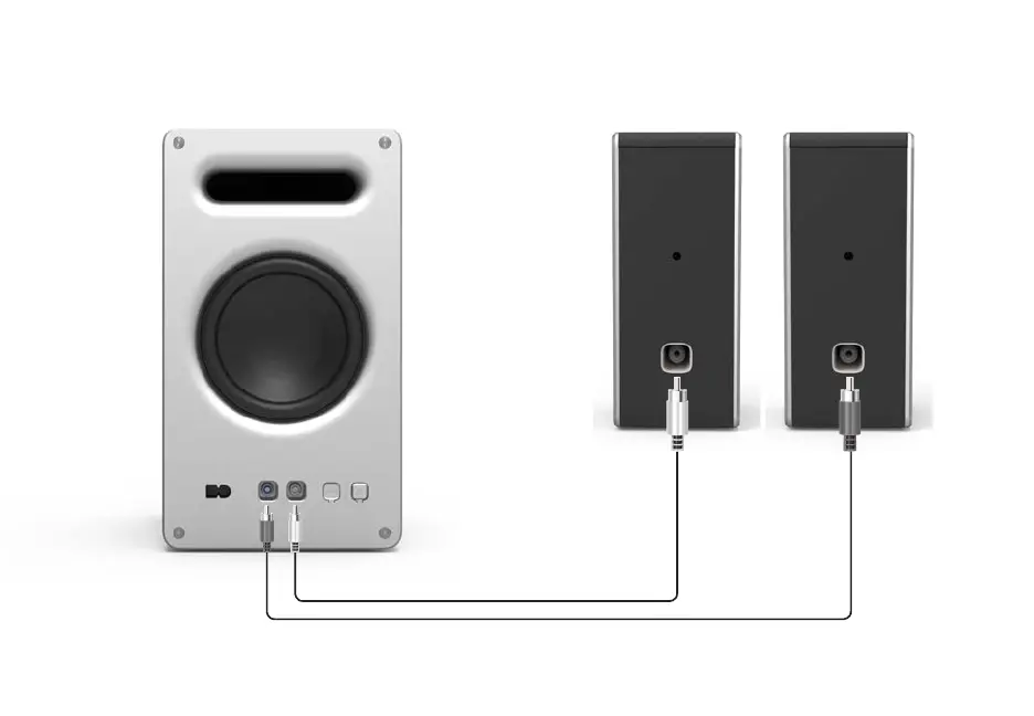 Connect the satellite speakers to the subwoofer using the included satellite speaker