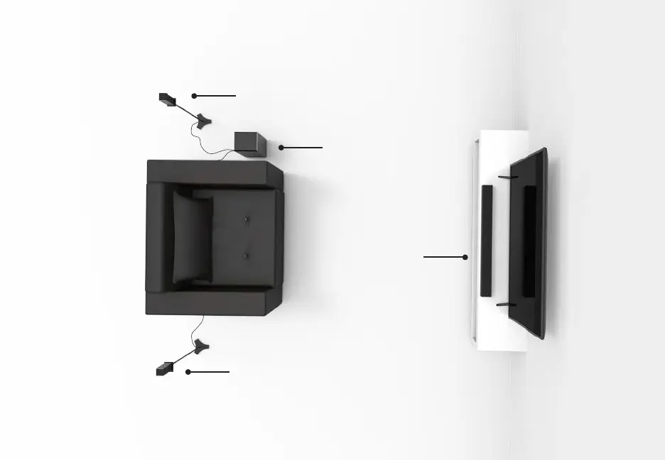 For the best surround sound experience, position the sound bar, subwoofer, and satellite