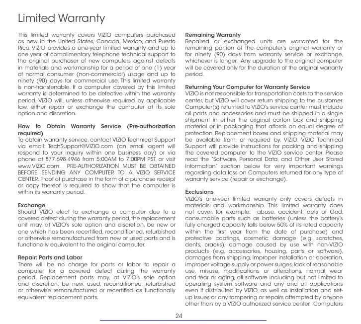 www.VIZIO.com. PRE-AUTHORIZATION MUST BE OBTAINED