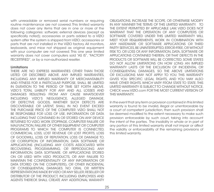 THE PURCHASE PRICE OF THE COMPUTER. VIZIO SHALL NOT