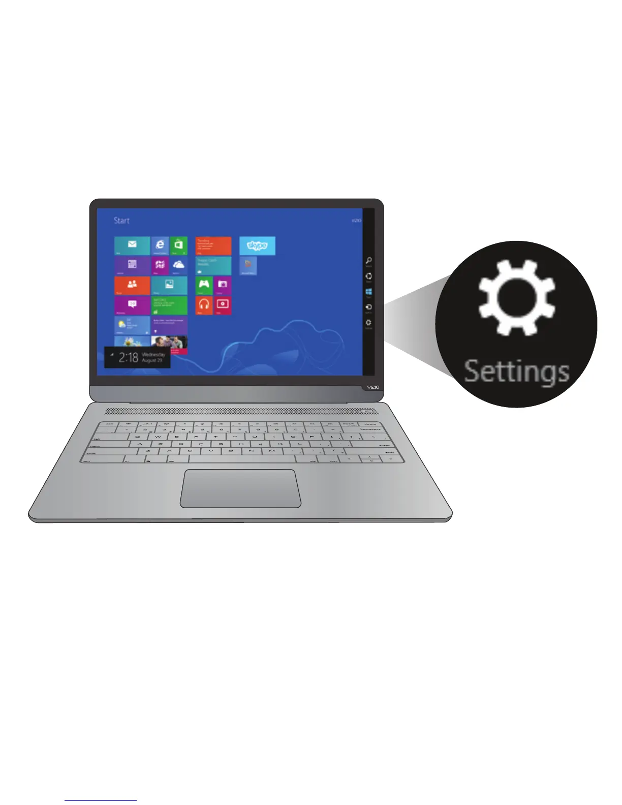 Select the Settings button in the charms bar.