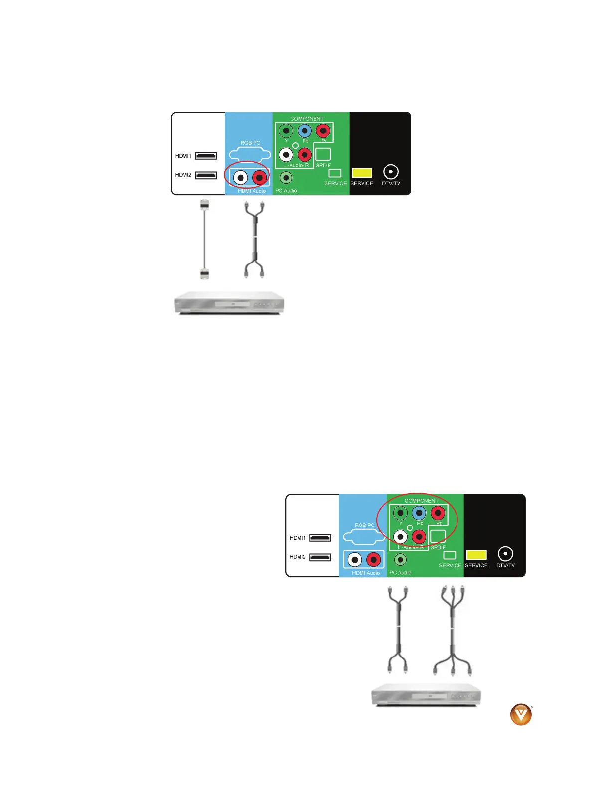 the adjacent HDMI 2 L and R AUDIO jacks on the back of your HDTV.