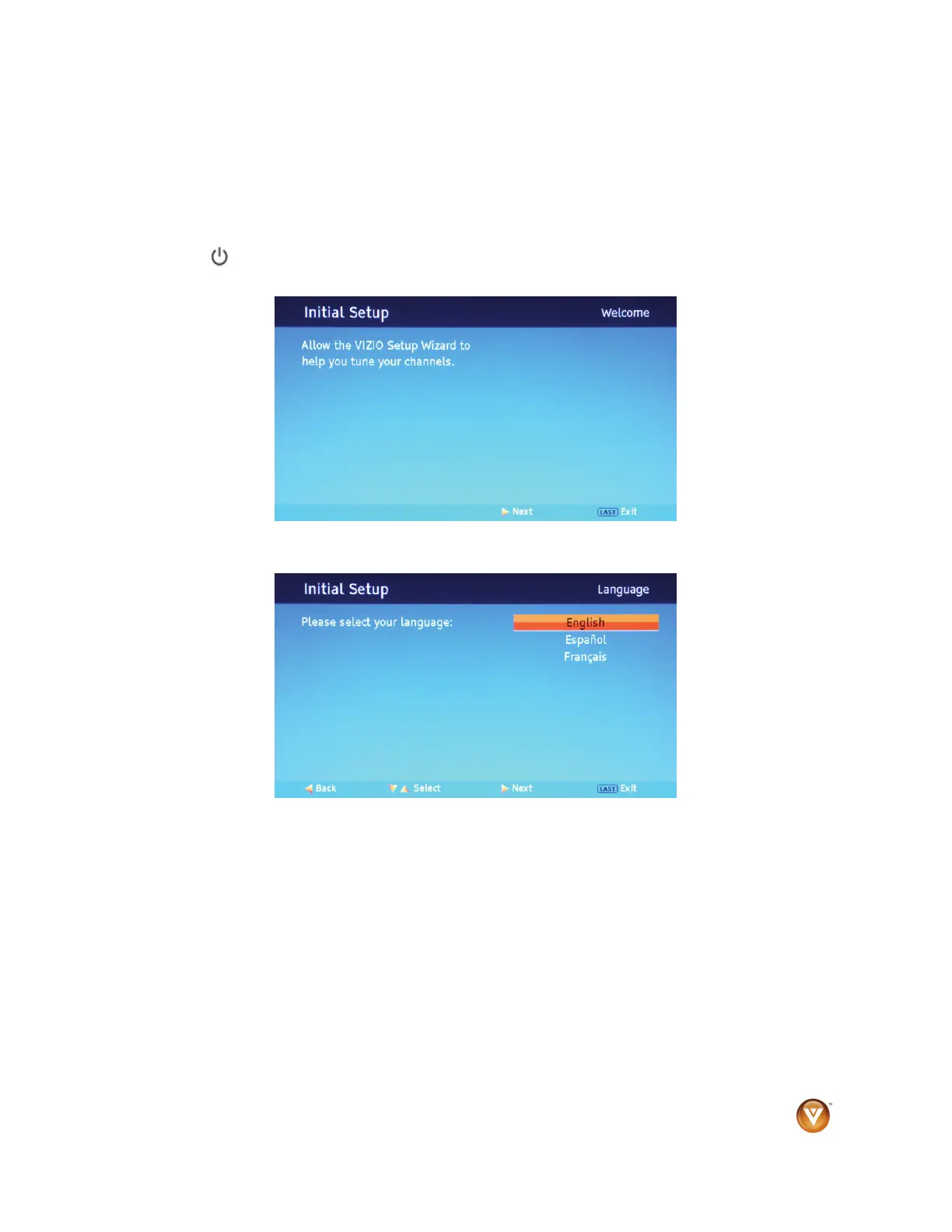 The Initial Setup Welcome screen opens on your HDTV.