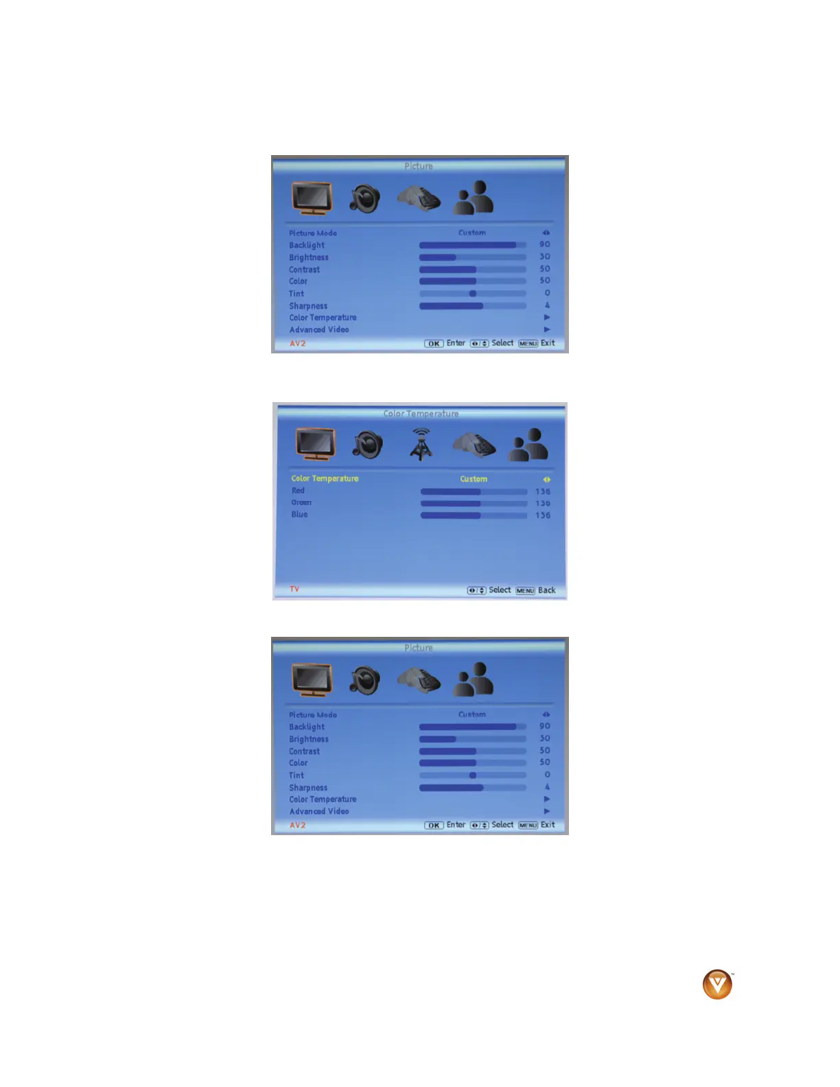 2. Press ▲ or ▼ to select Color Temperature, then press ►. The Color Temperature menu opens.