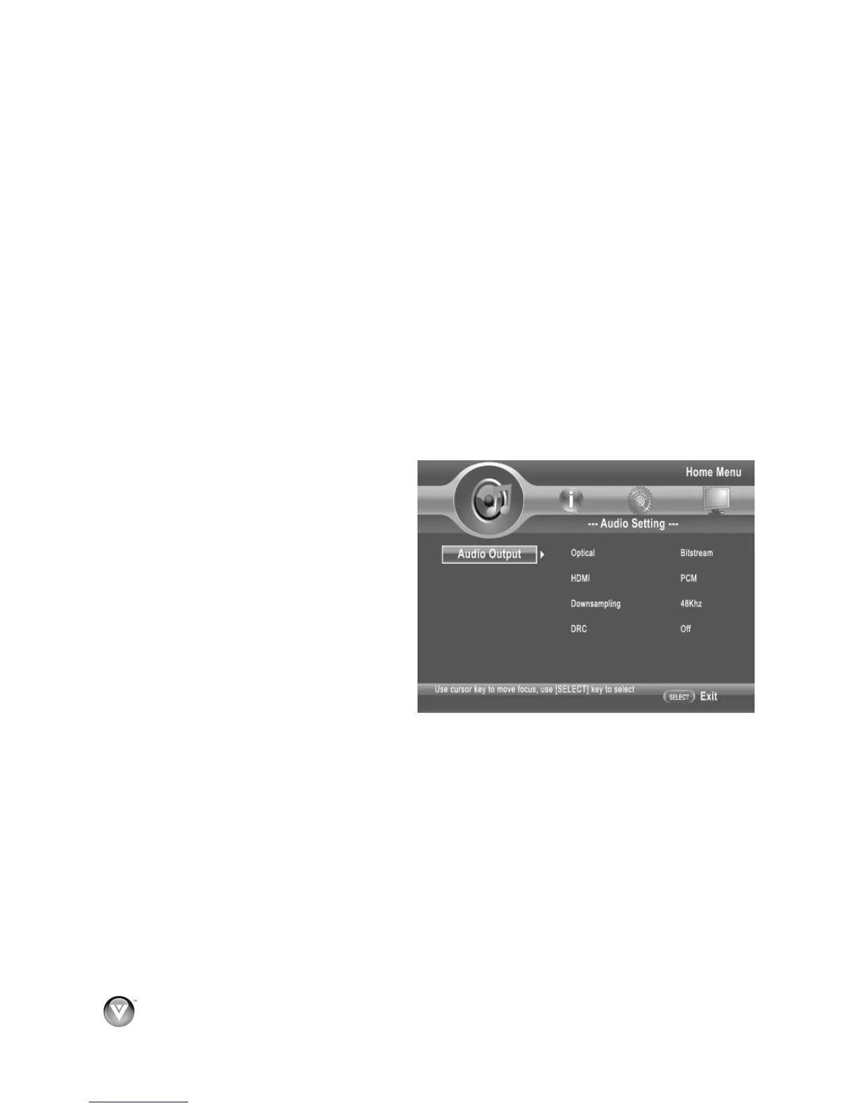 Audio Output Menu Options