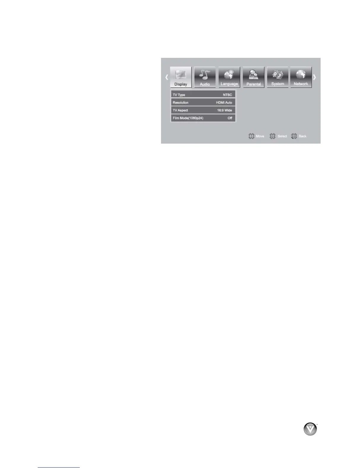 Select the video output resolution option that best fits the type of TV you have connected to your player:
