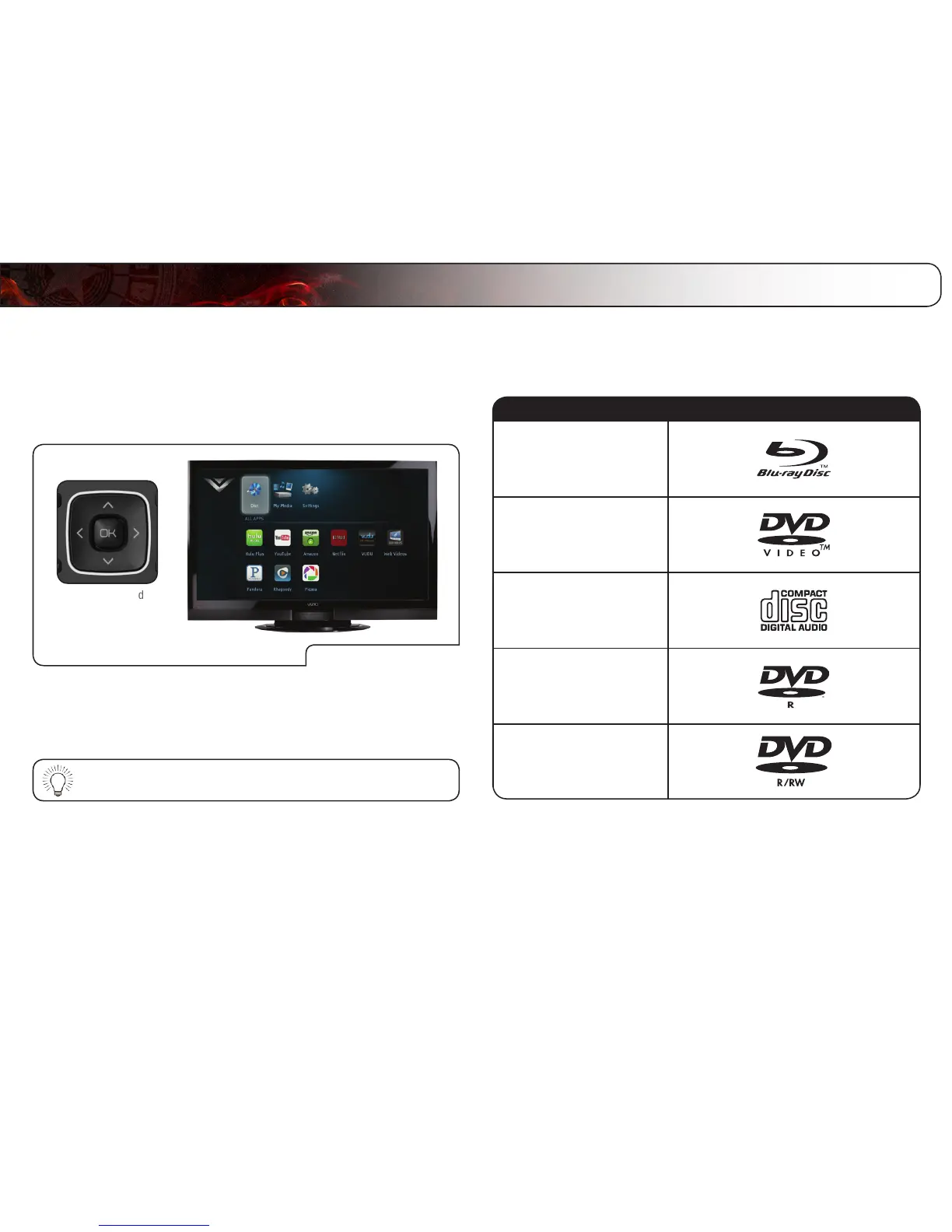Your player can play several kinds of discs. Use this table to ensure your disc is