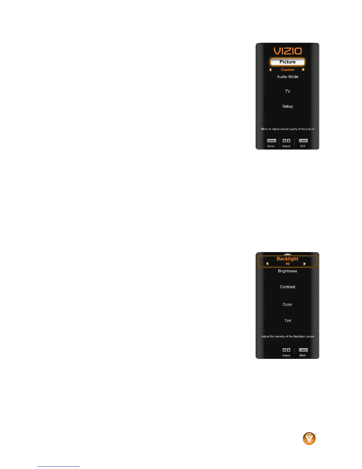 control or VOL + or VOL –on the side of the HDTV to adjust the setting.