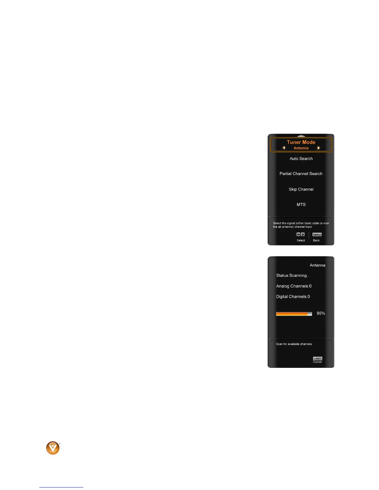 from Antenna to Cable), channels can be scanned using the TV TUNER setup menu.