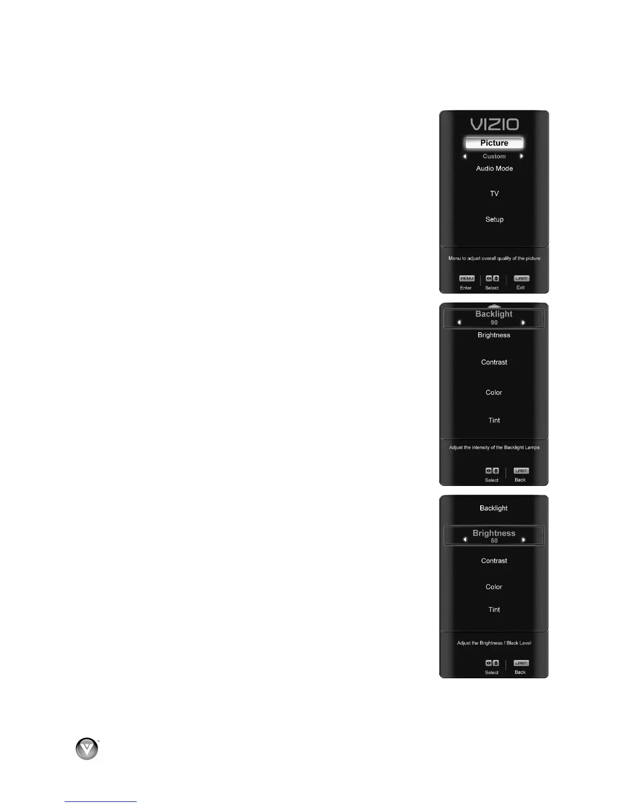 The Backlight level does not affect the Brightness (black level) or Contrast