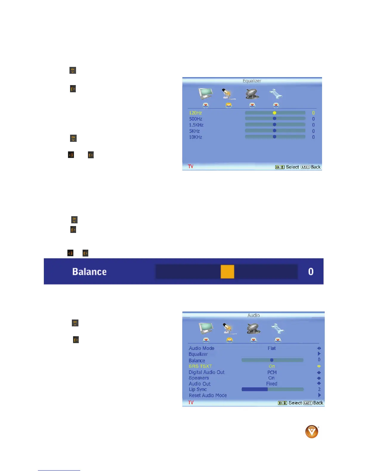 button to start adjusting the balance and the menu page will disappear and be replaced by a