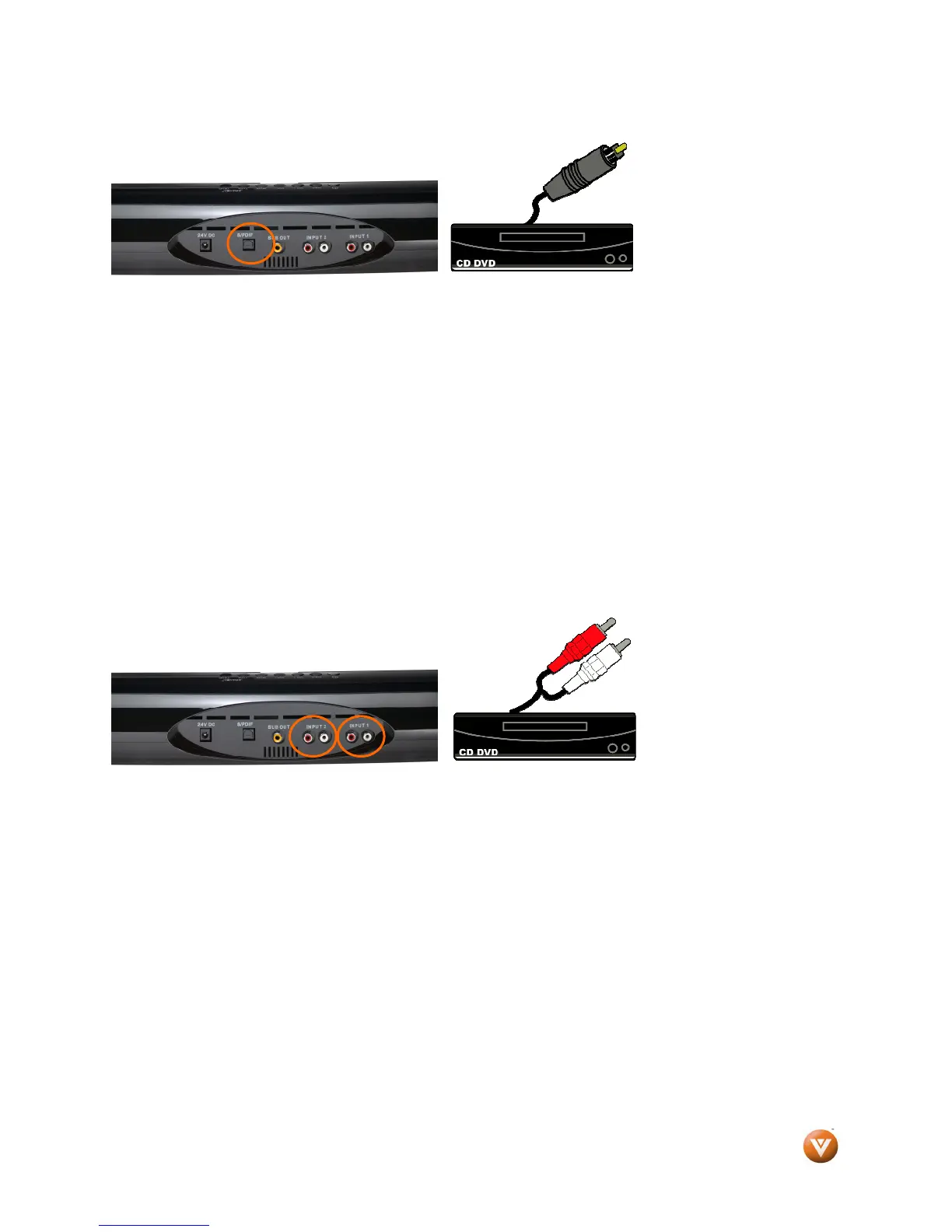 1. Turn off the power to the HD Sound Bar and CD or DVD Player.