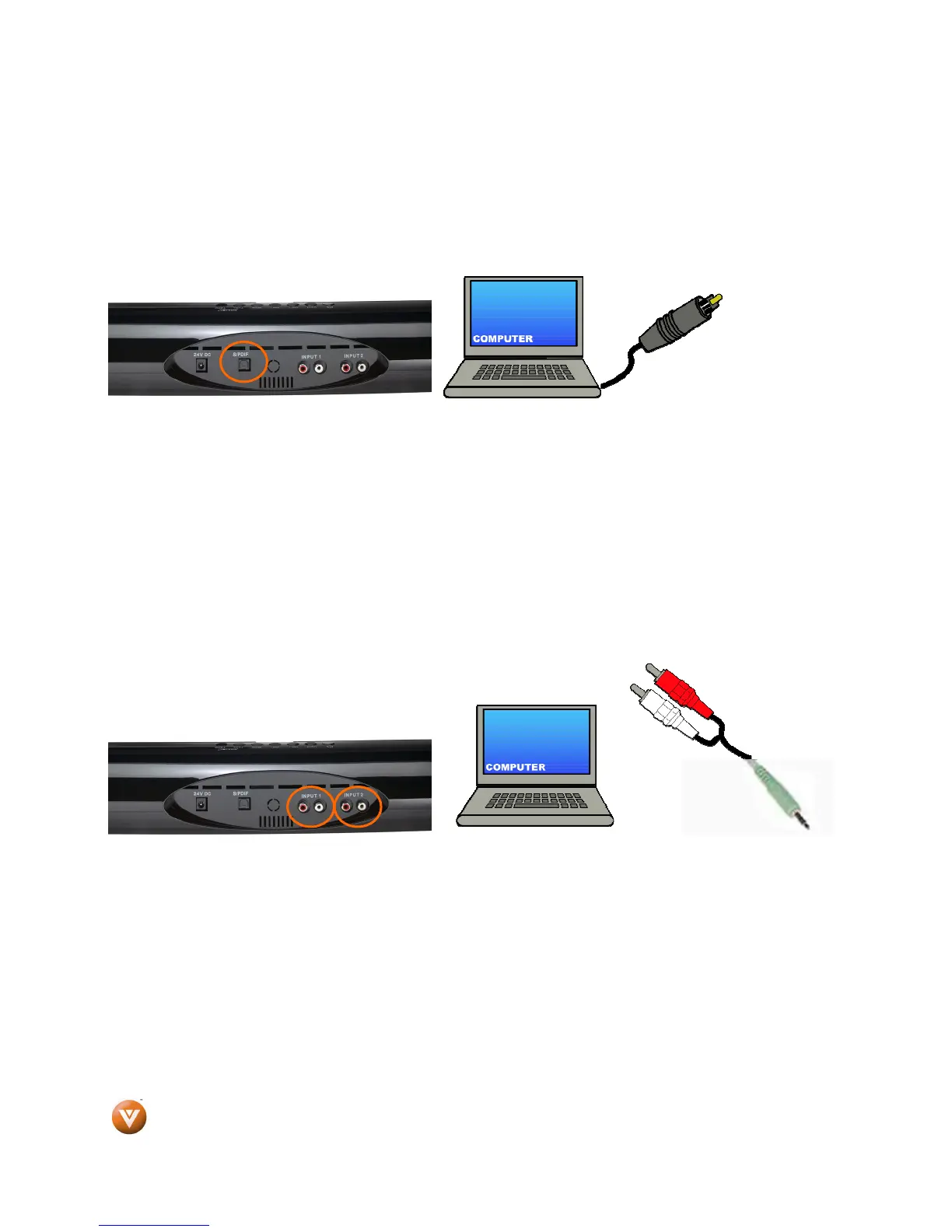 If your Computer has a SPDIF (optical) digital audio output, you can connect it to the OPTICAL AUDIO IN