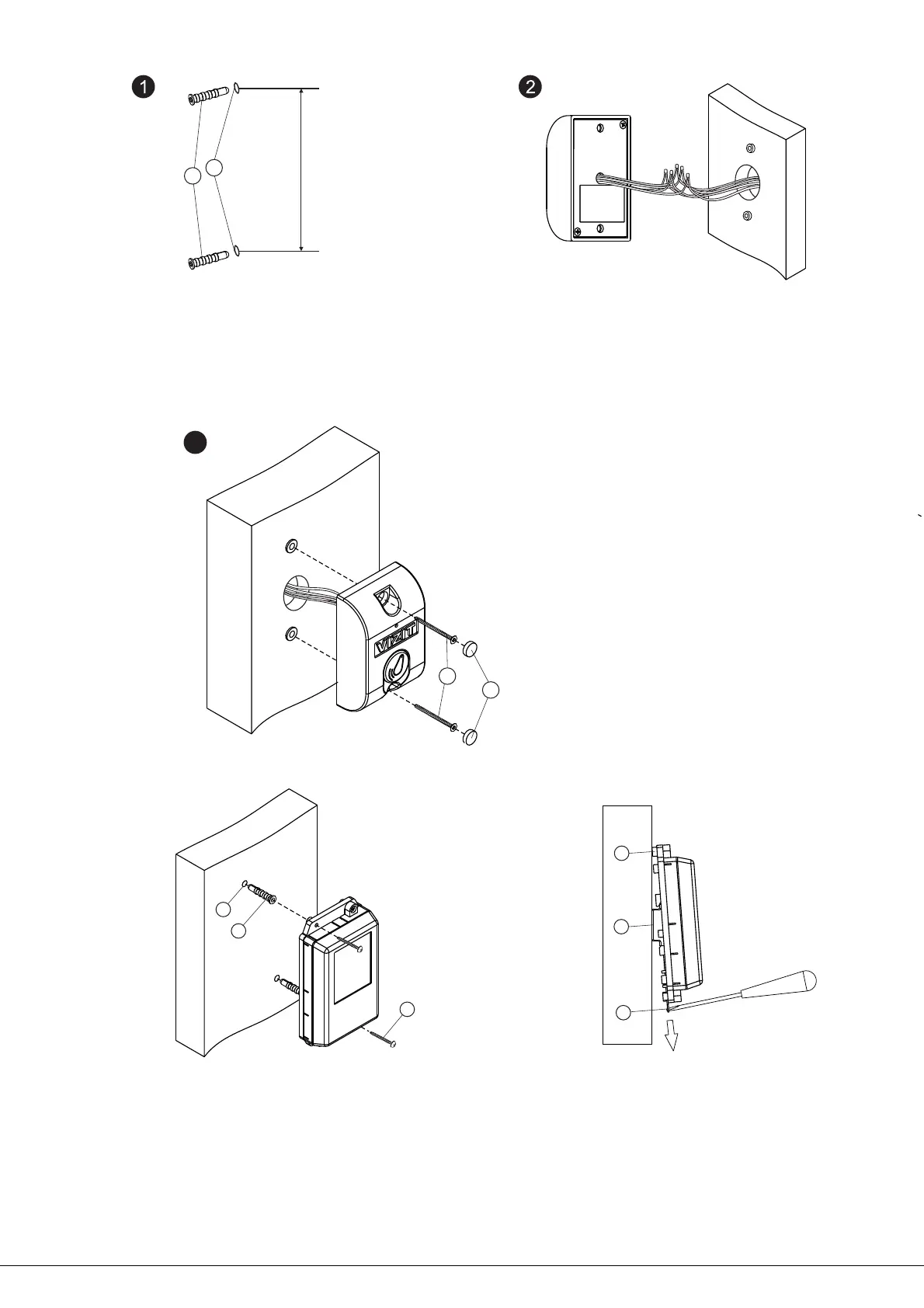 - Drill in a wall 2 holes (1) with diameter 6 mm