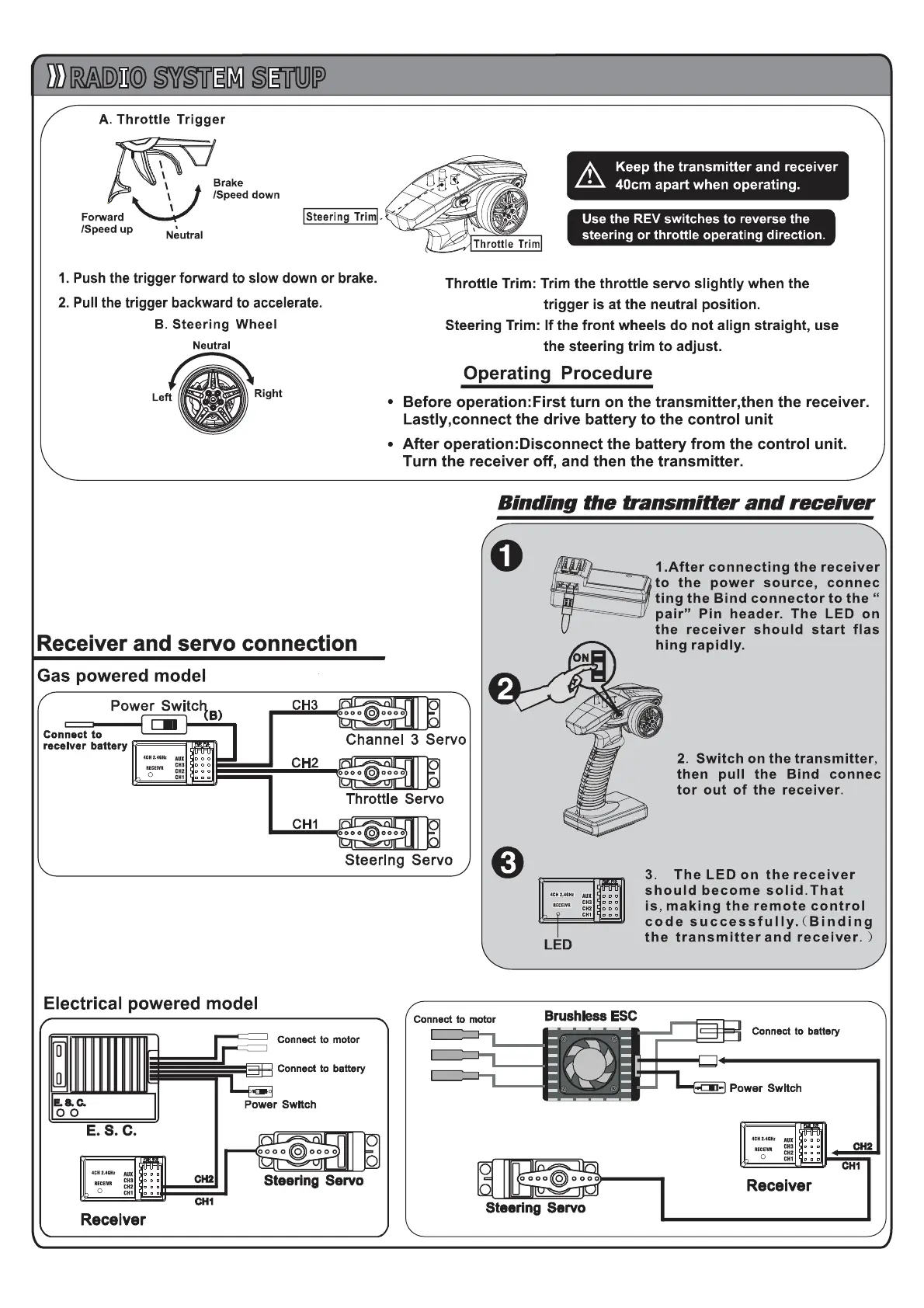 VKAR Bison - Radio System Setup and Operation; Transmitter Control Usage; Power On;Off Operating Procedure; Binding Transmitter and Receiver