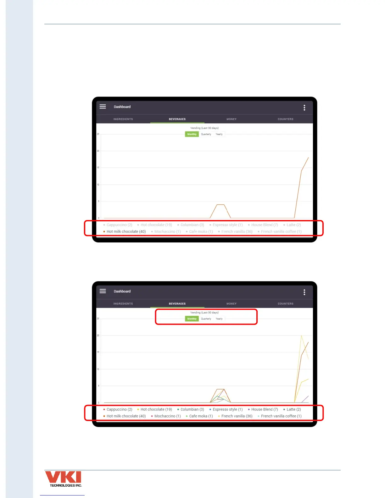 below, a monthly report for all beverages is selected.