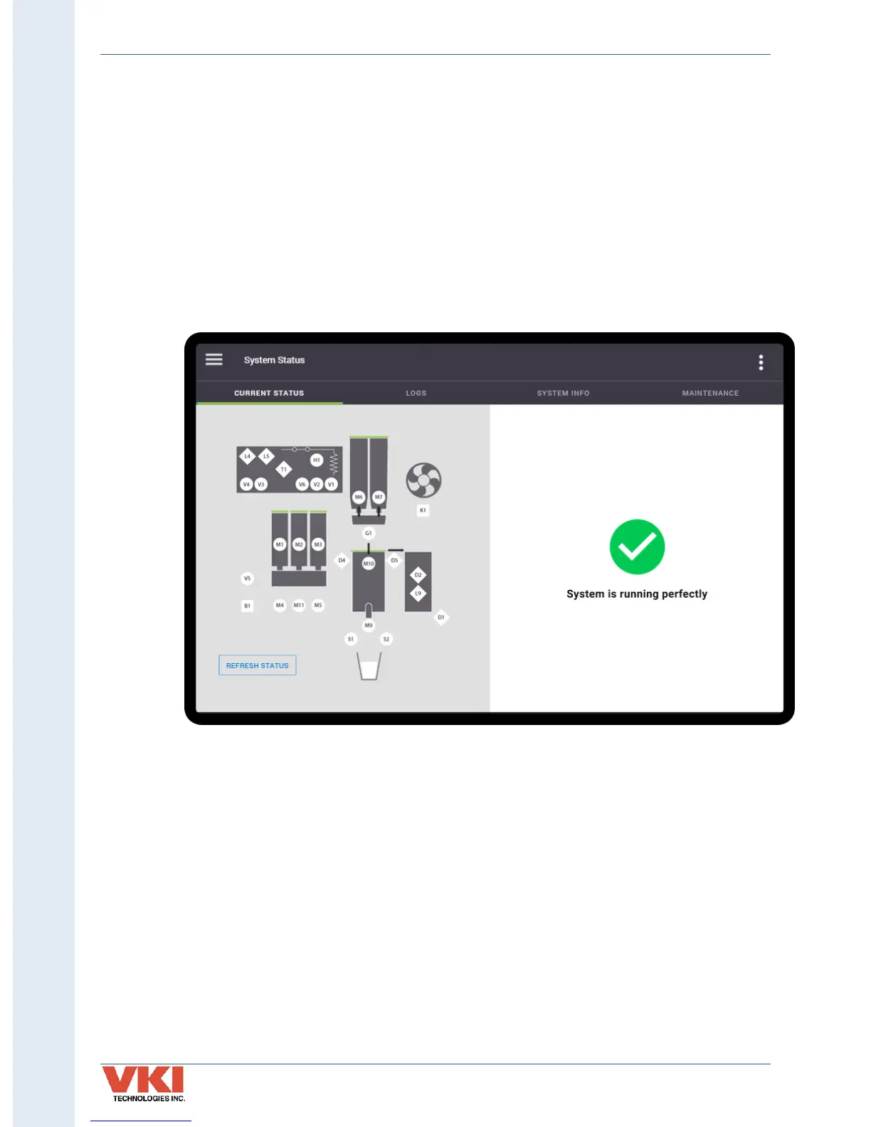 The machine's current operating status is displayed with an easy-to-read graphic. If the system is