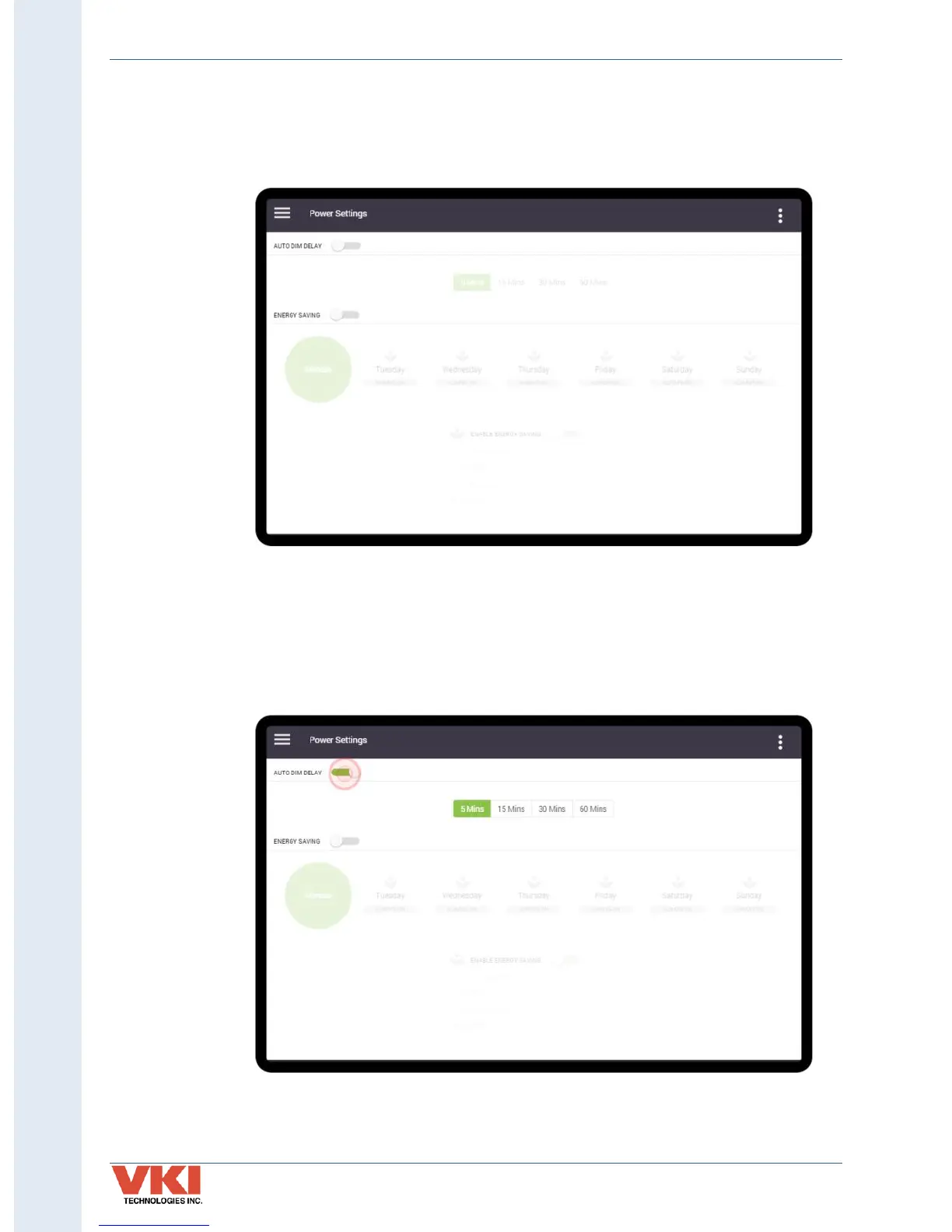 VKI Technologies Eccellenza touch - Power Settings; Auto Dim Delay