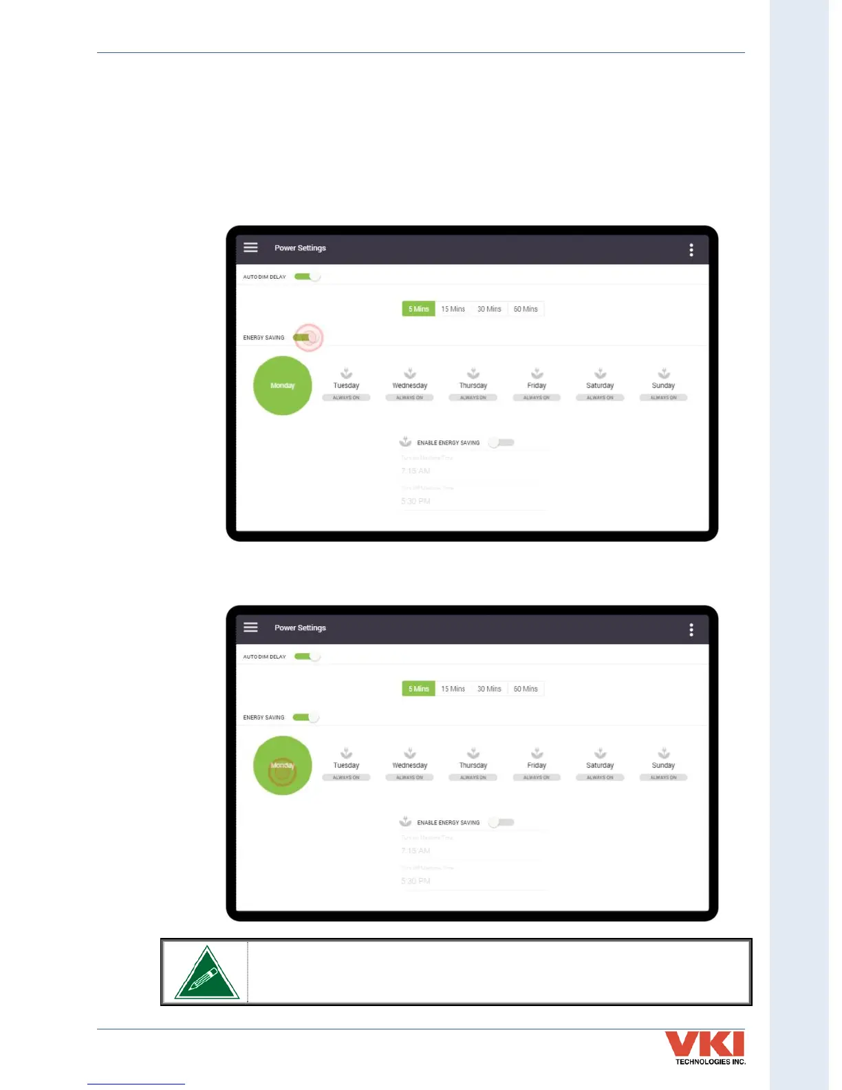If using the Energy Saving mode, it must be activated and set individually for