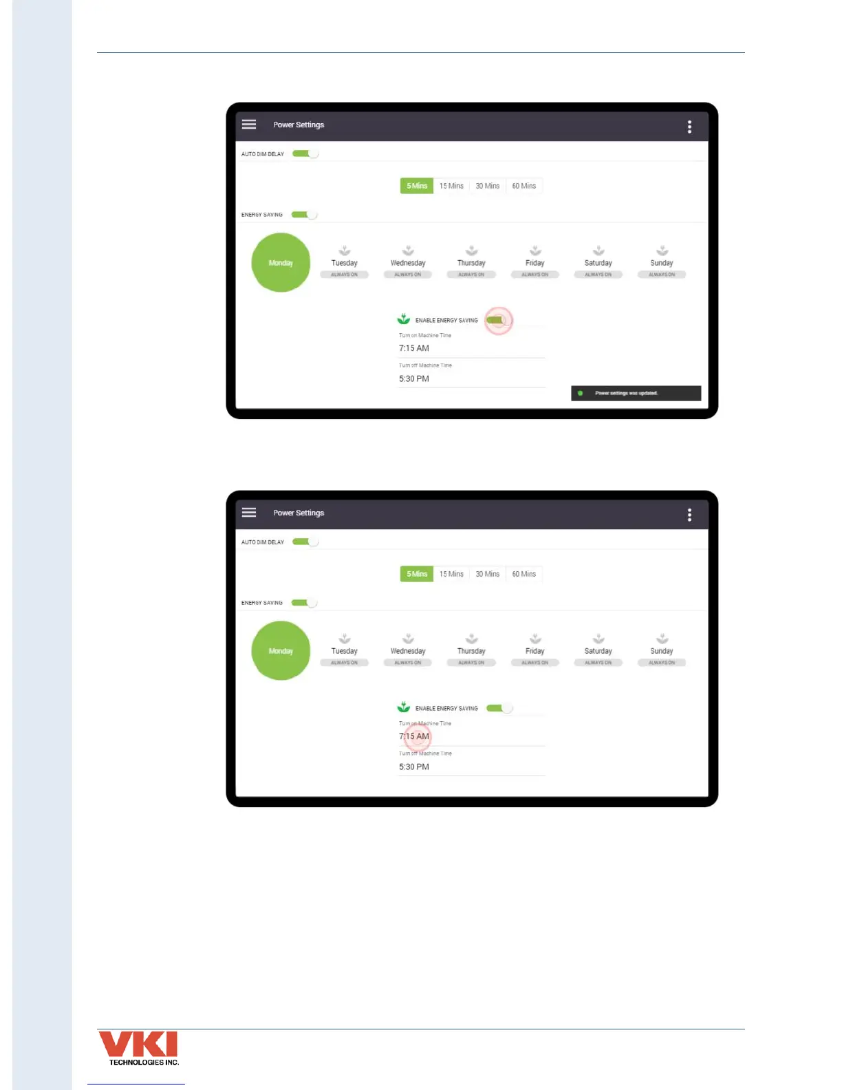 4. To set the time that the machine turns ON (for Mondays in this example), tap on the