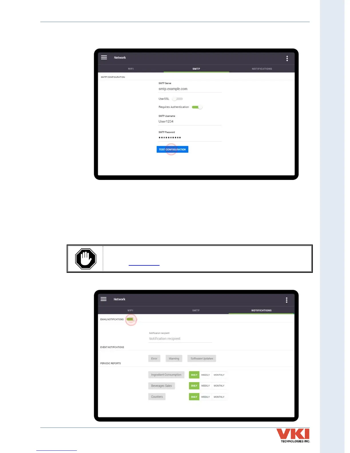 An SMTP server must first be configured to be able to use the 'Notifications'