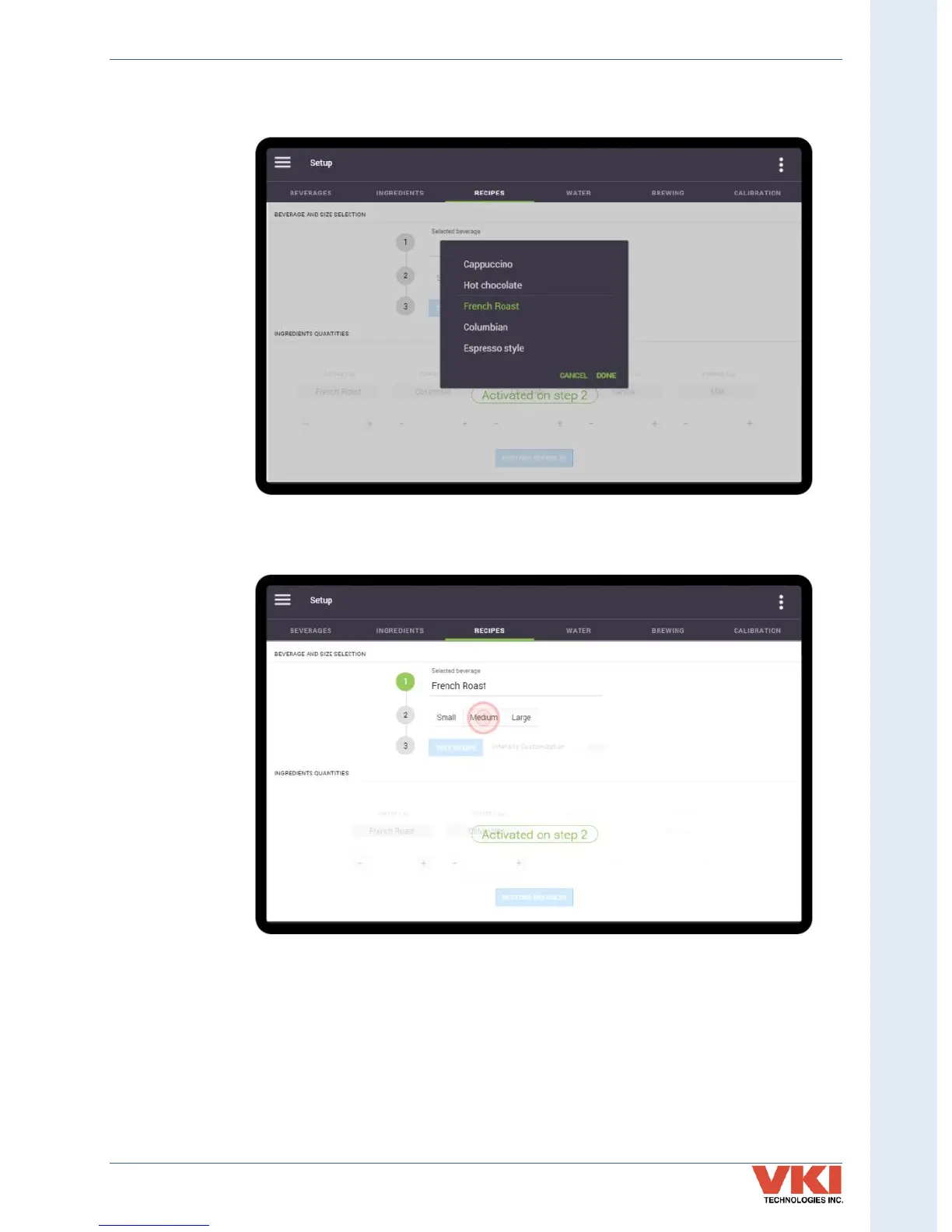 4. On Line 2, select the cup size that needs to be adjusted. In this example, the 'Medium'