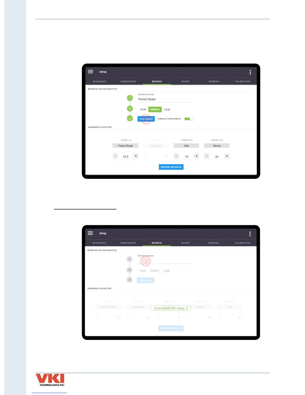 on the blue 'Test Recipe' button on line 3. The Eccellenza Touch will now dispense the