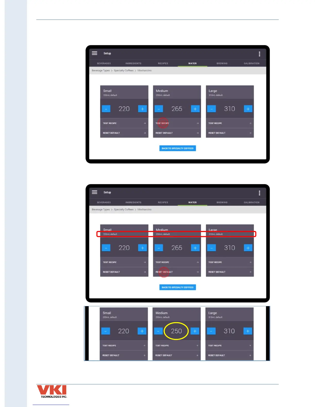 5. Place a cup on the cup stand and tap on the 'Test Recipe' button to make a test vend