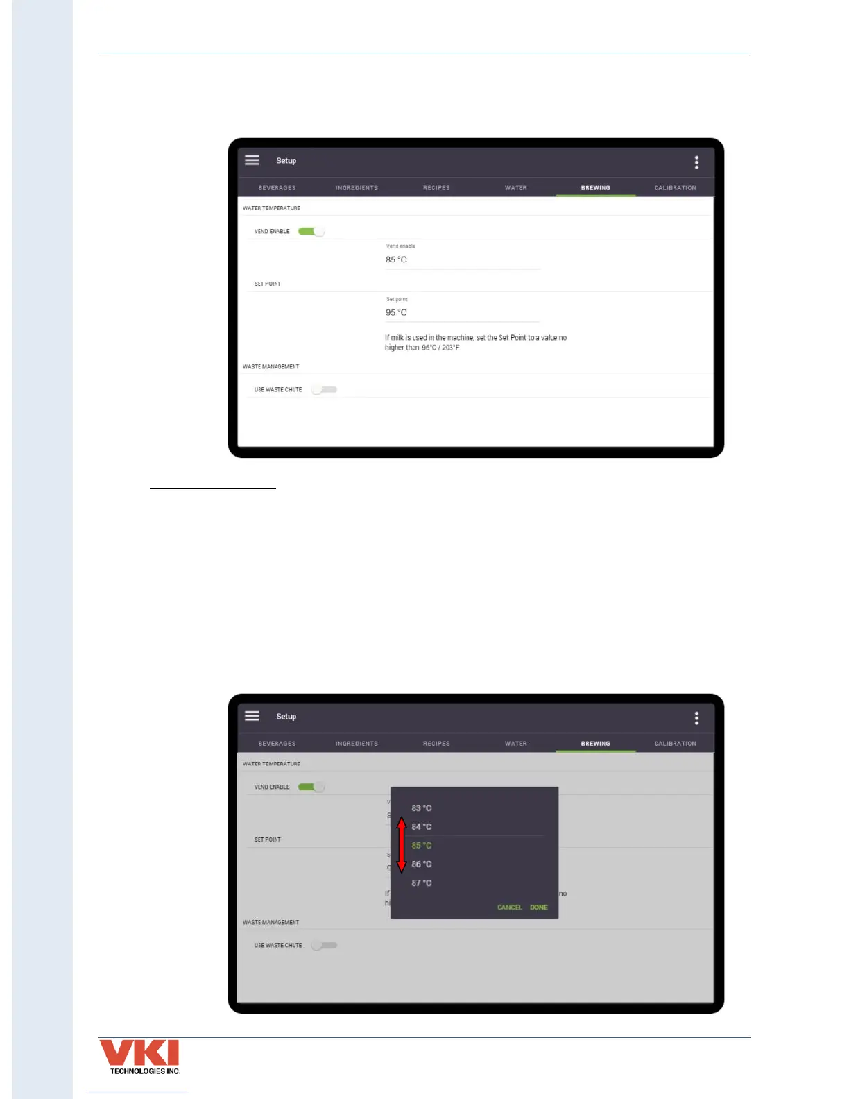 at which the machine will brew a beverage. Should the temperature drop below this setting, you