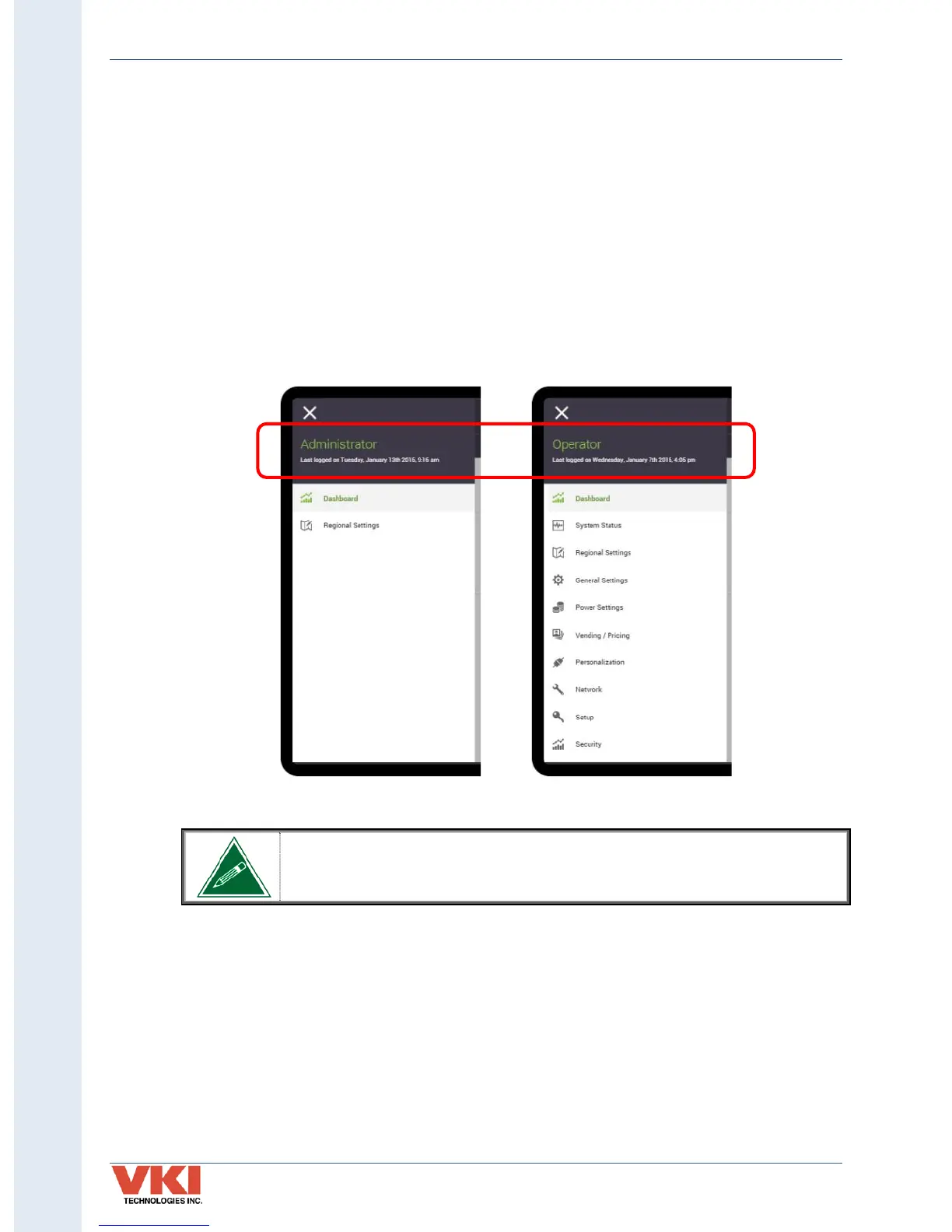The information in the Operator section applies only to someone logged in as