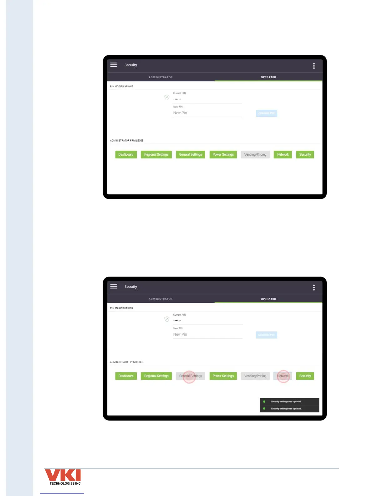 the Operator PIN, tap 'New PIN', and follow the prompts.