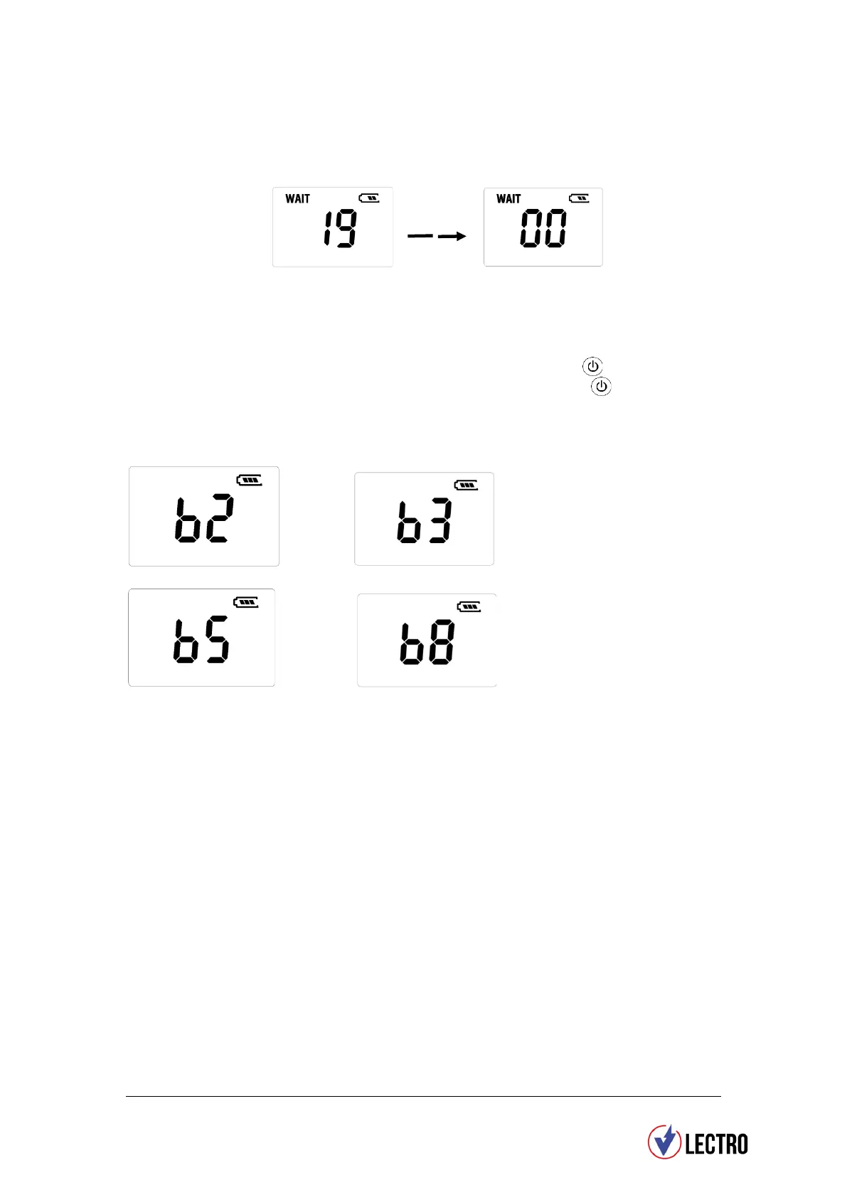 poziom alarmu jako b2, b3, b5, b8 po ustawieniu, odczekaniu 2 sekundy, urządzenie