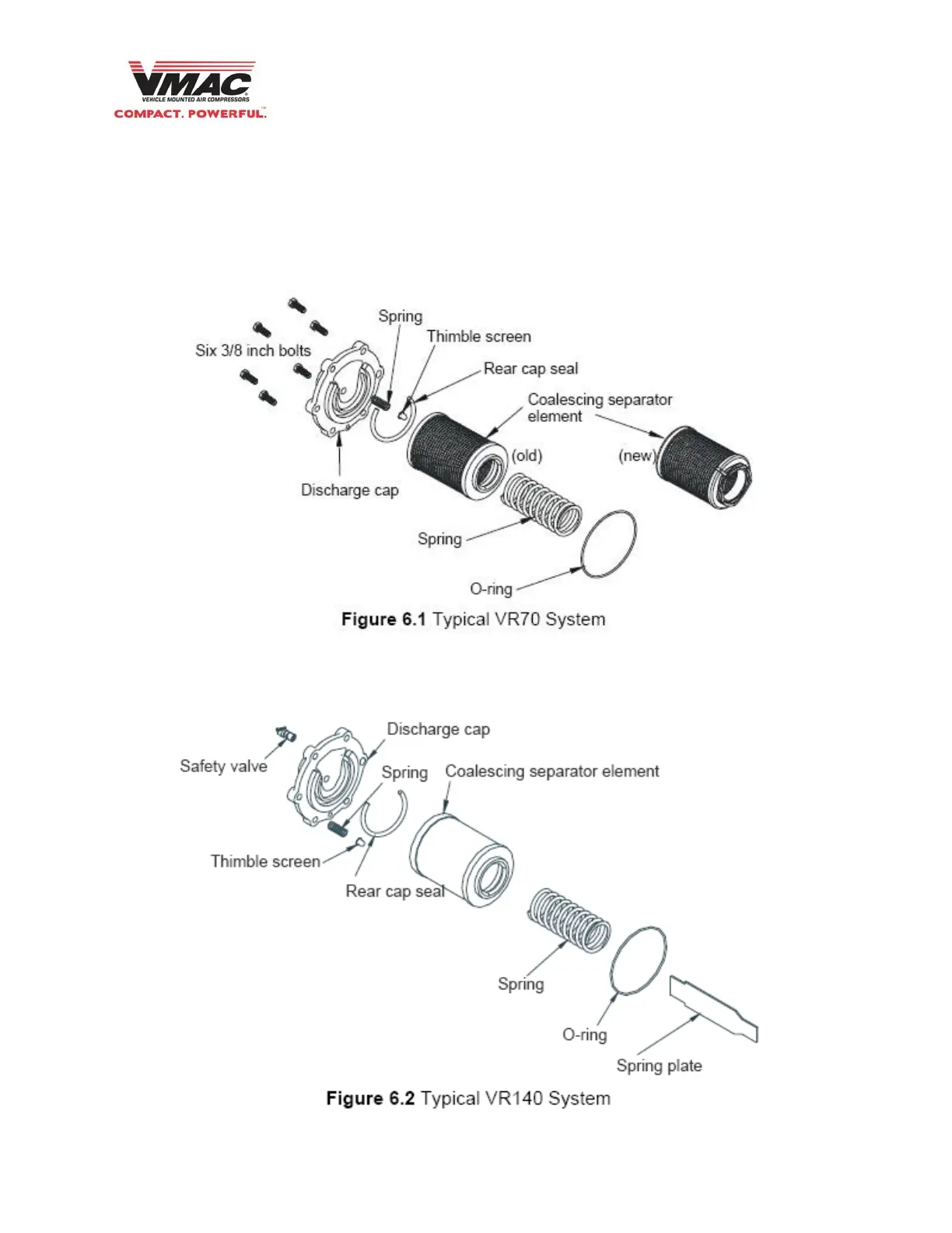 4.Removethecoalescingseparatorelement,largespring(andontheVR140,thespringplate)from
