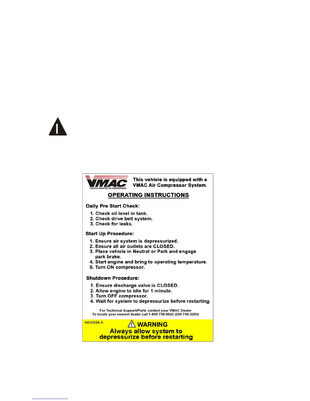 Manual for the Underhood Air Compressor, which provides specific