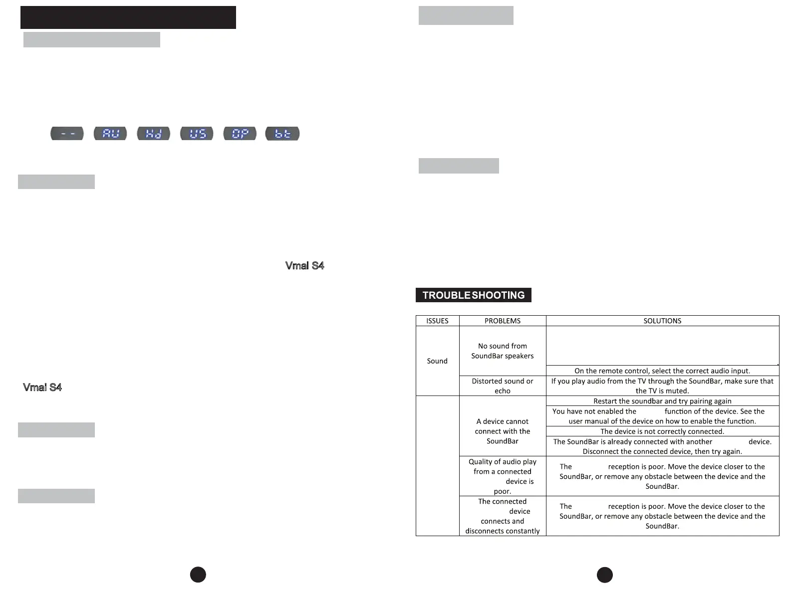 The "BT" display will stop flashing when the sound bar is paired successfully.