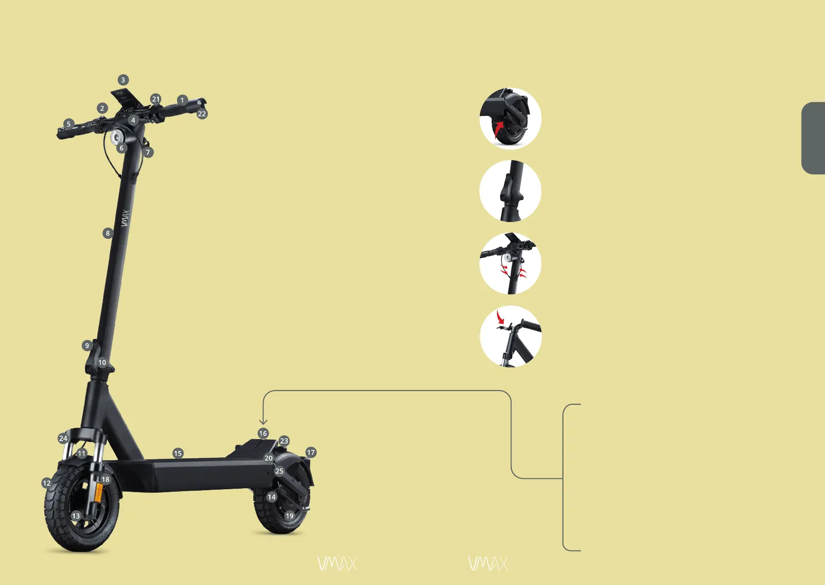 Haken ein, sodassder E-Scooter in geklappten Zu-