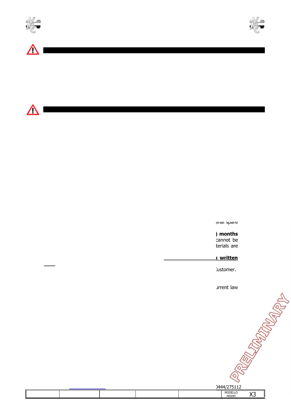 not eligible to warranty. The warranty is not valid if VMC products turn out to be: