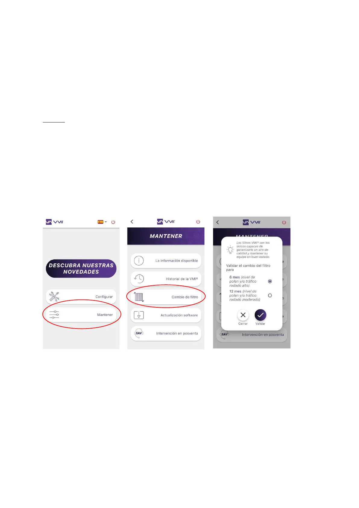 2. Confirmación del cambio de filtro en la aplicación VMI+