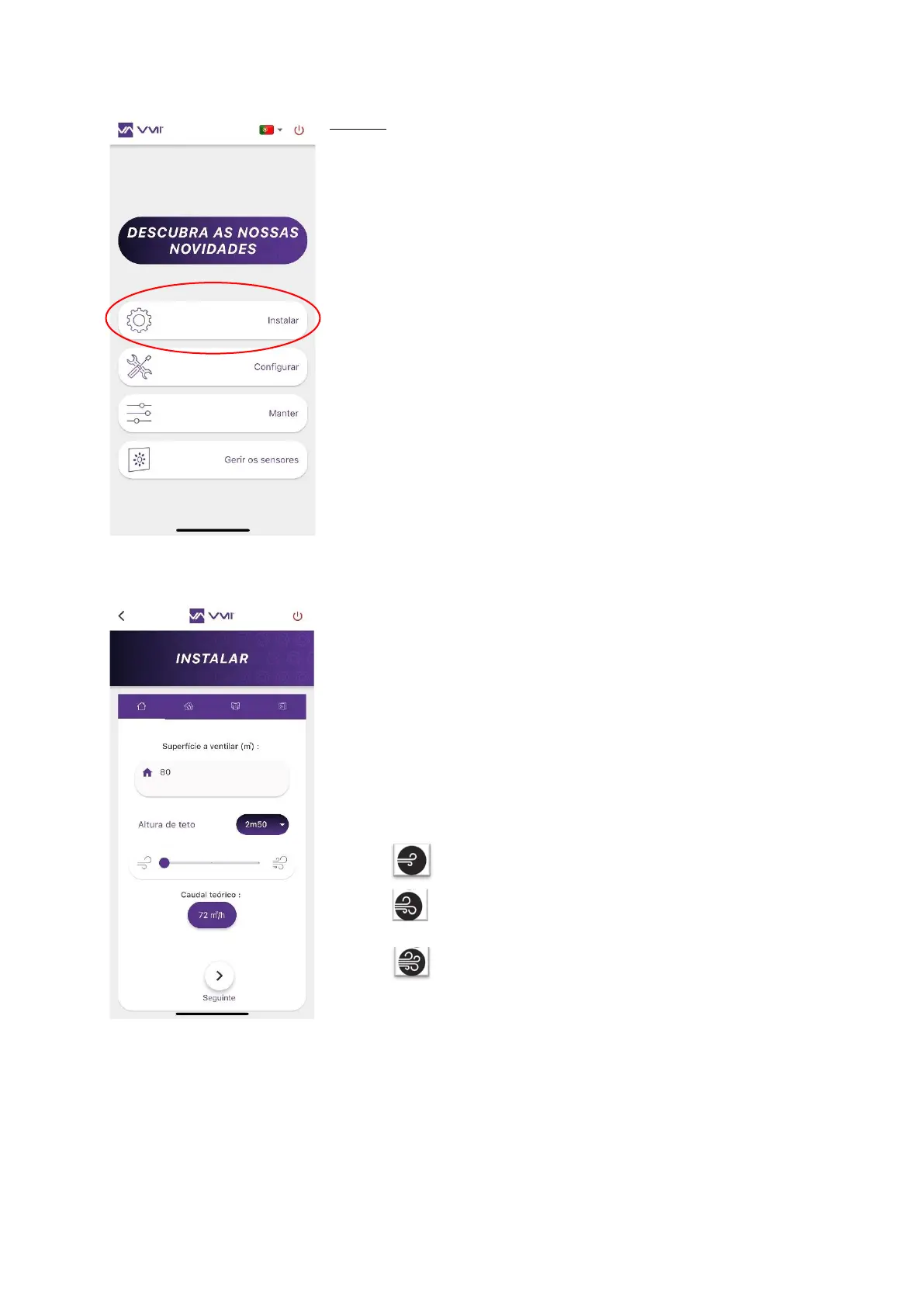 o O modo de ventilação: Estão disponíveis 3 modos: