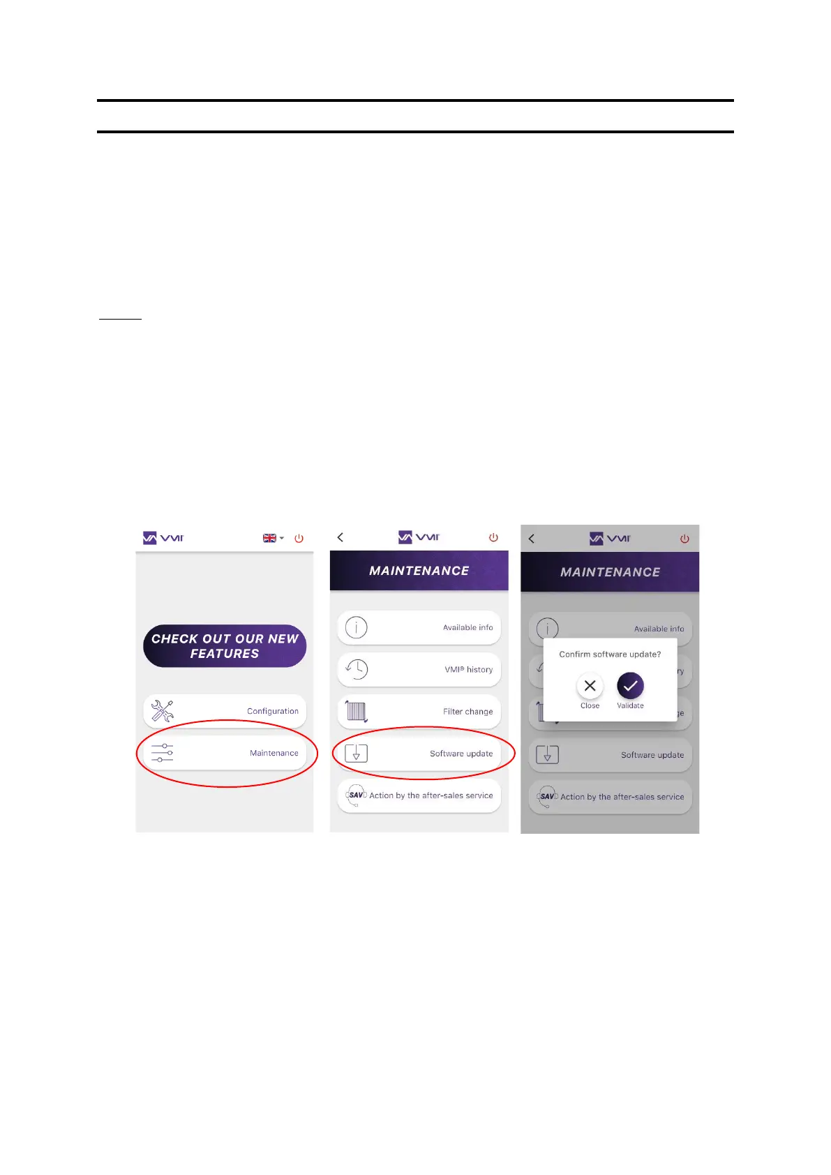 Updates can take a few minutes. Do not handle the smartphone and stay close to the VMI